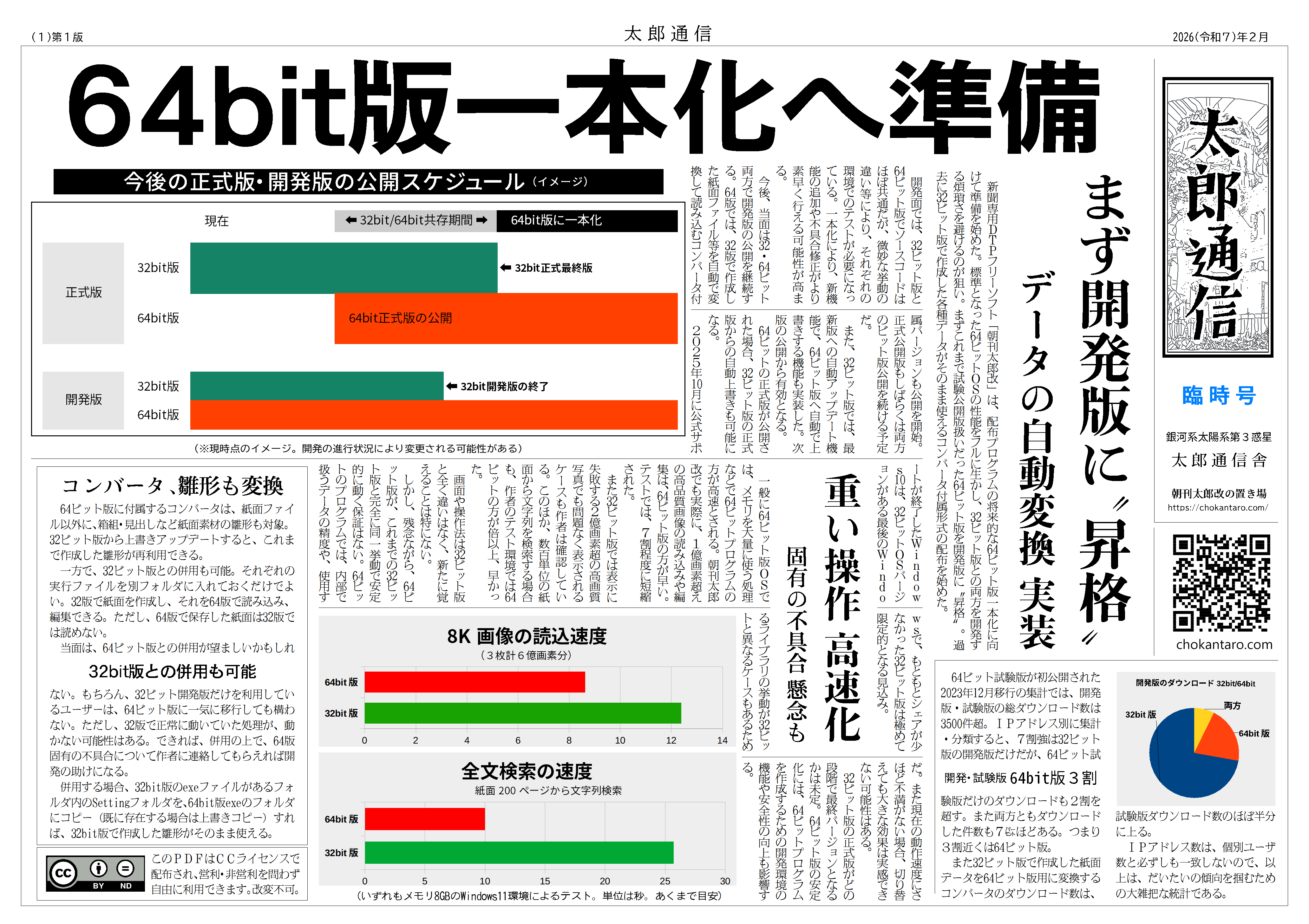 【64bit版】64bit版を開発版に昇格。32bit版で作成した紙面や雛形を自動変換するコンバータ付属版も公開開始(説明新聞)