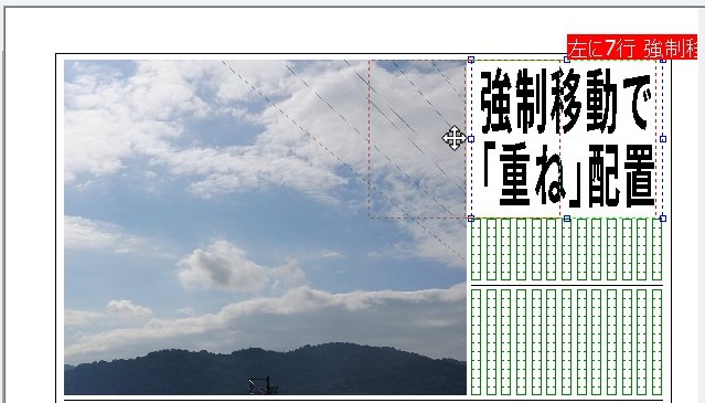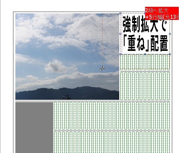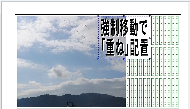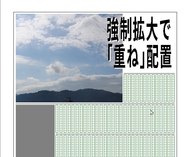 写真の上に見出しを一部かぶせるなど、矩形を重ねて配置するには工夫が必要です。