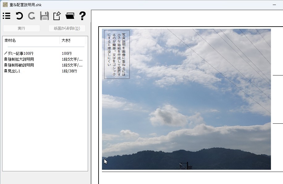 記事が矩形をスキップする「またぎ」もありますが、それも矩形と記事が重なるわけではありません。