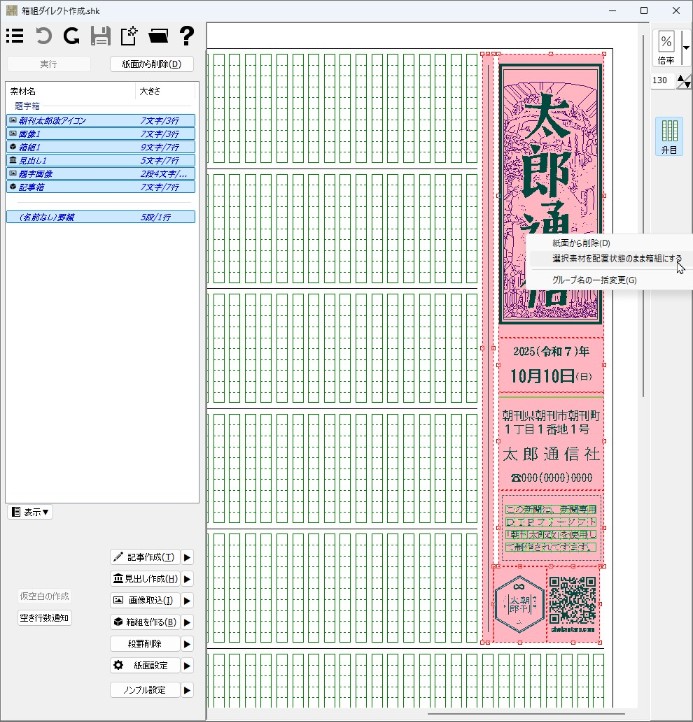このため、たとえば左下の箱組をいったん紙面から削除すると、再度配置するのに手間がかかります。