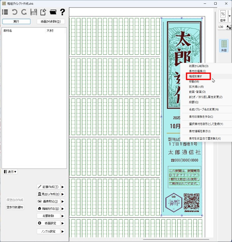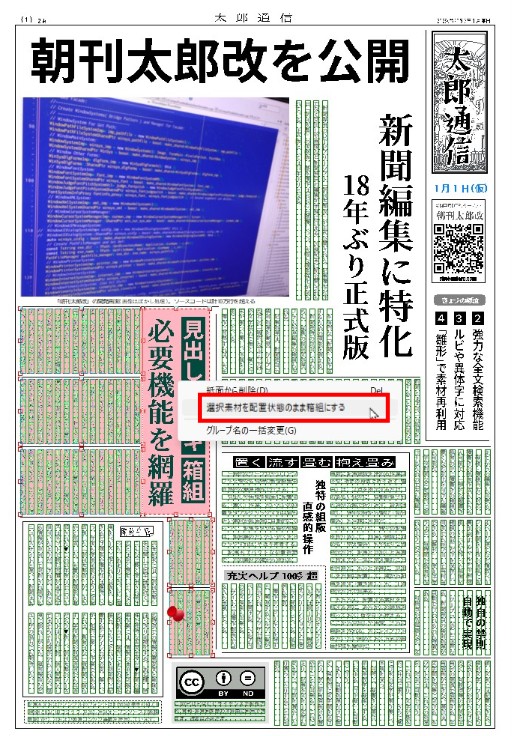 ダイレクト作成した箱組に限らず、紙面に配置した箱組を壊す場合、配置状態のまま現在の紙面に戻すことも出来ます。